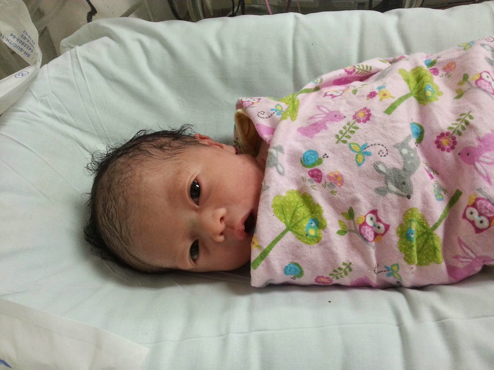 Maryam ketika beberapa minit dilahirkan ke dunia. Terus buka mata.
