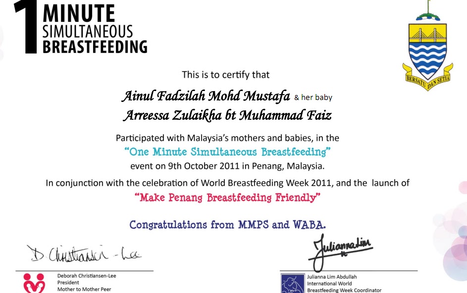 Seronok sangat bila dapat contribute dalam hal-hal breastfeeding ni. korang dapat tak?? Siapa yang dah join boleh dapatkan sijil kat SINI ye ..
