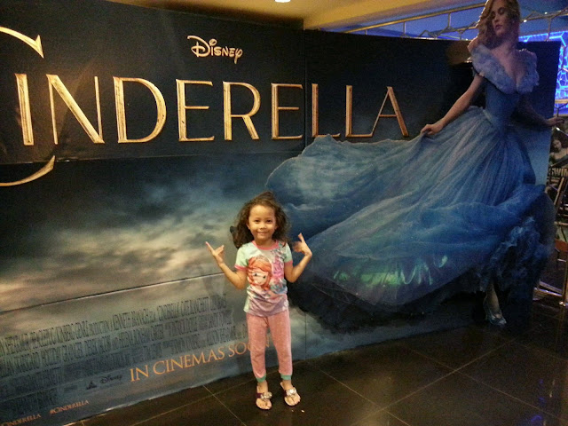 Last week dapat tahu je cinderella dah keluar cepat cepat beli tiket. Sejak awal iklan kat tv dah beritahu Arreesaa yang nak bawa dia p cinema tengok cinderella.
