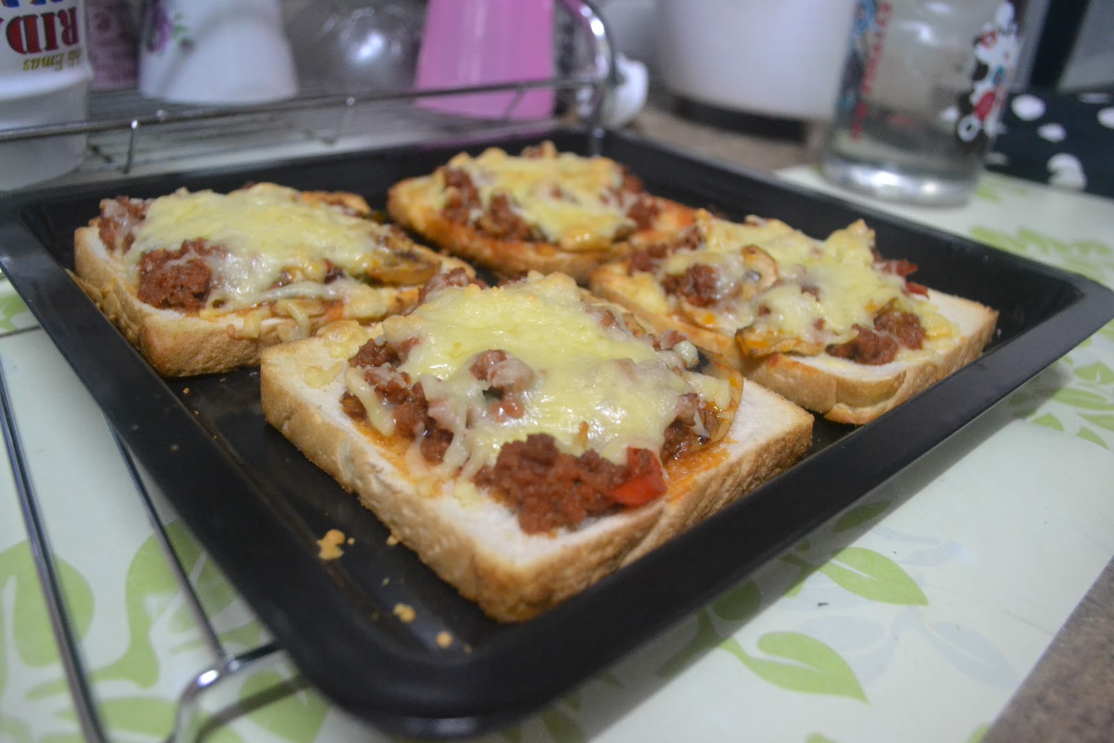 Btul la ainul.boring dh buat breakfast yg biasa.nnt bleh try buat pizza ni.takyah susah2 buat doh.guna roti je.nk ambik resepi yer..