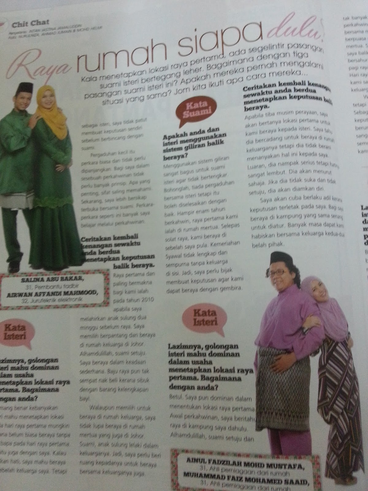 Awal bulan Mei hari Ainul mendapat whatsapp dari wartawan Majalah Pa&Ma. Nak interview pasal balik kampung Raya nanti. Raya rumah siapa dulu. Alhamdulillah 6 kali raya kami mengamalkan sistem giliran tanpa ada masalah.
