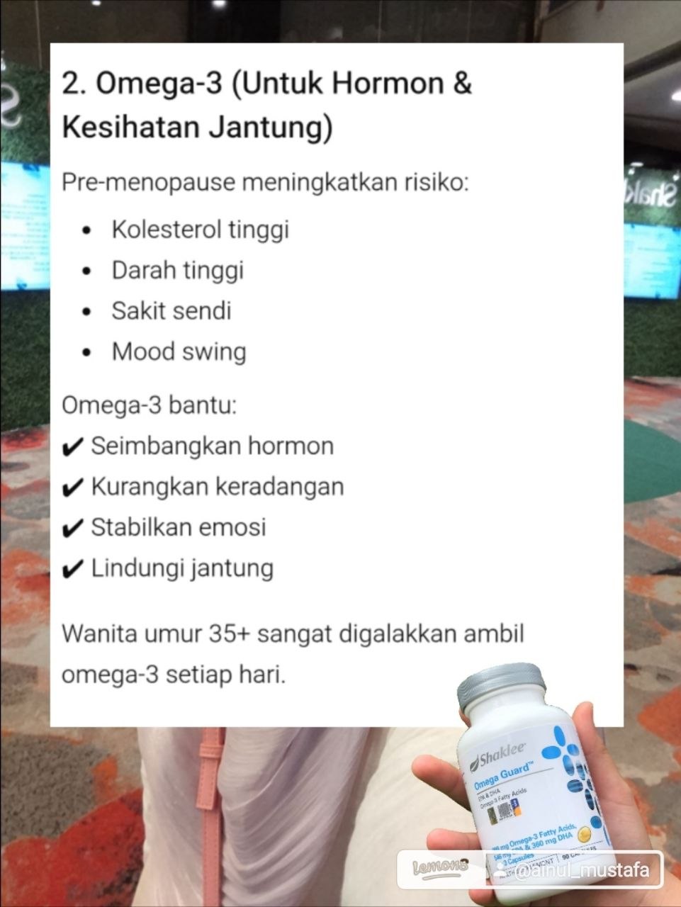 Supplement Pre Menopause bukan la wajib tapi sangat membantu tingkatkan kesihatan kita. Tapi basic jaga kesihatan jangan lupa iaitu jaga makan, aktifkan badan.