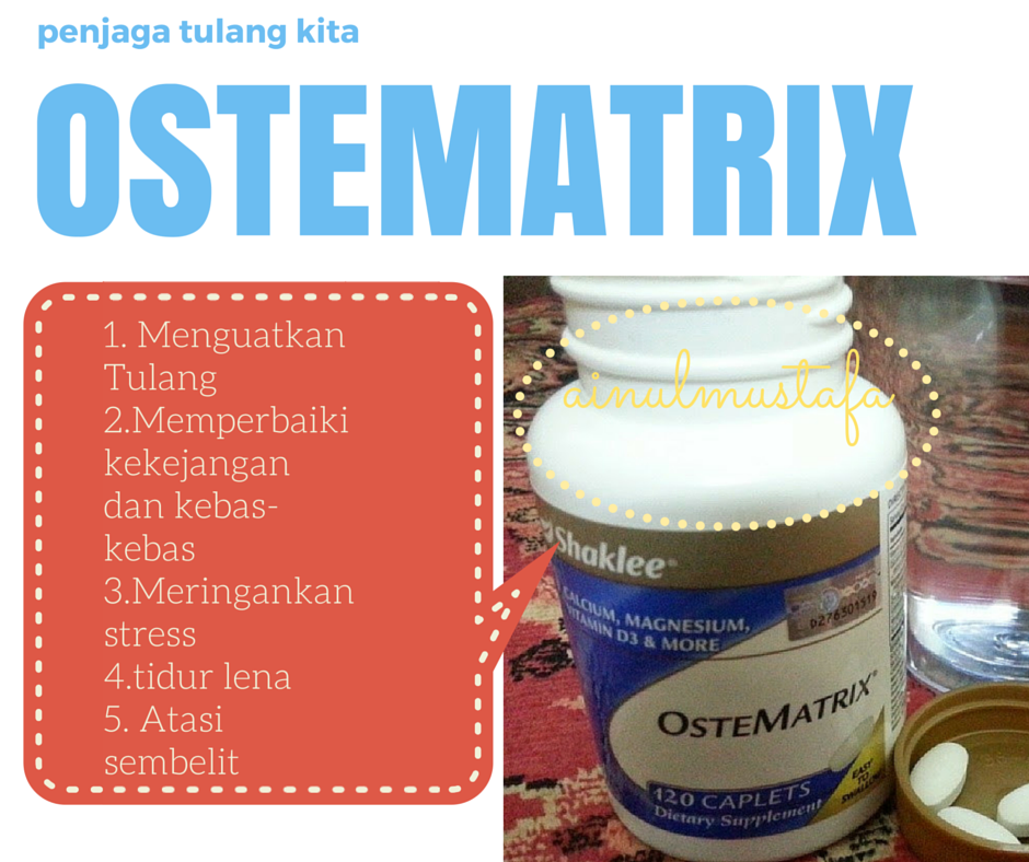 kerana Ostematrix ni lengkap dgn unsur Kalsium, Magnesium, dan Vitamin D. Vitamin D dalamnya penting utk memastikan penyerapan kalsium dalam darah dengan lebih efektif. Makan 4biji sebelum tidur, esoknya bangun pagi cergas ceria, membuang memang mudah.. Alhamdulillah..