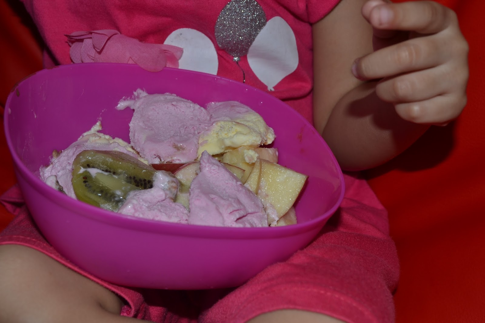 6. Yang terakhir, ibu bapa jangan lupa makan sekali dengan anak.. Buah-buahan tu cakap la kita yang makan. Arreessa makan ice cream jek. Masa makan tu suapkan dia ice cream bersama sedikit buah.